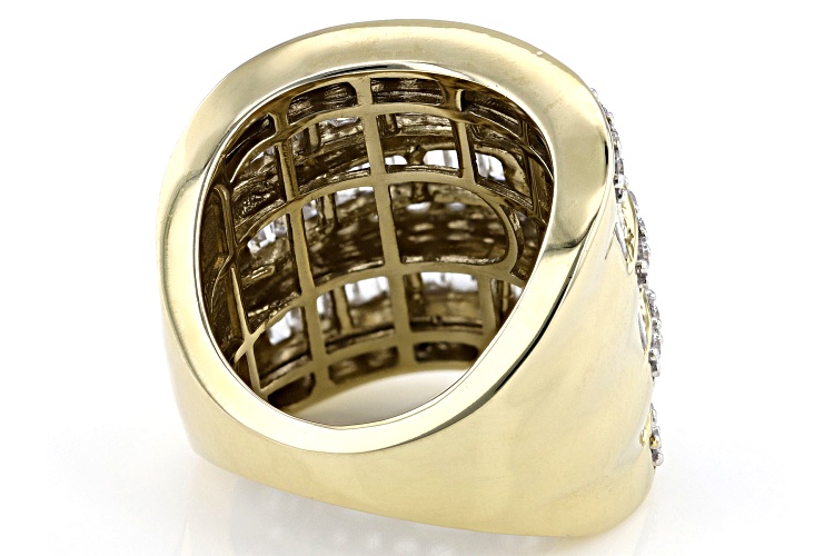 Bella Luce® 5.25ctw White Diamond Simulant 18k Yellow Gold Over Brass Ring. Measures Approximately 0.89"L x 0.86"W. Not Sizeable. The Diamond Equivalent Weight is 3.18ctw.
