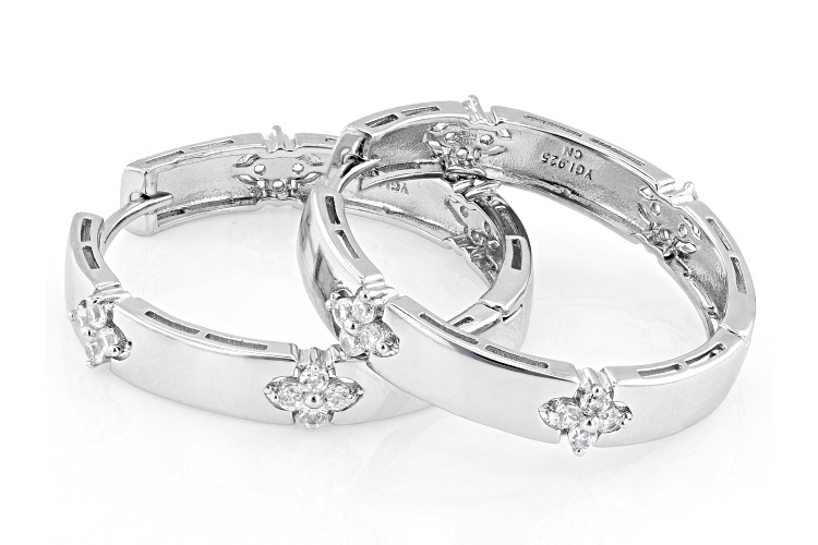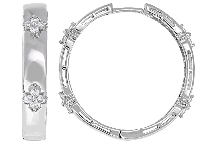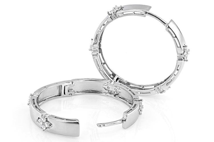 • Bella Luce® 1.60ctw White Diamond Simulant Rhodium Over Sterling Silver Hoops