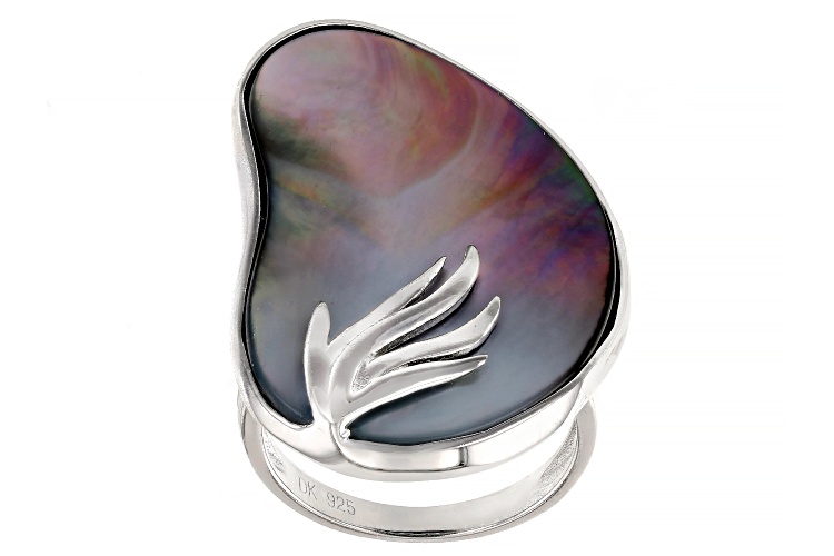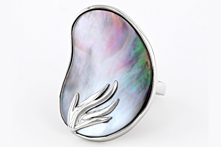 30x20mm Tahitian Mother-of-Pearl Rhodium Over Sterling Silver Ring - Size 6
