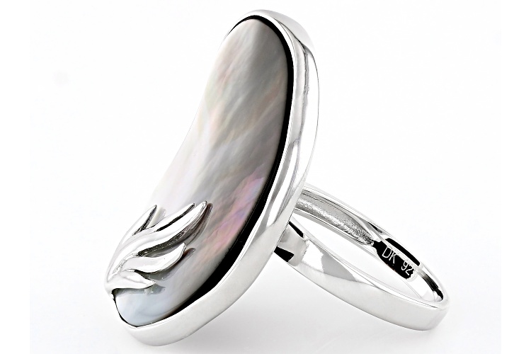 • 30x20mm Tahitian Mother-of-Pearl Rhodium Over Sterling Silver Ring - Size 6