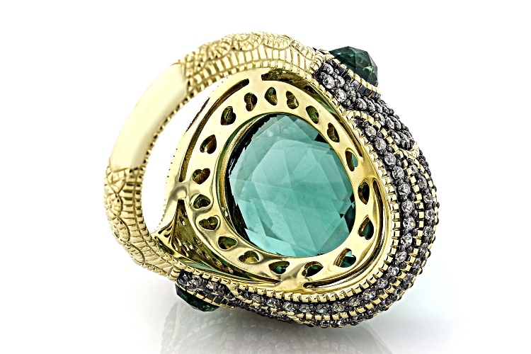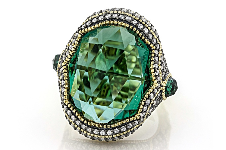Judith Ripka 19.80ctw Lab Created Green Quartz & Bella Luce® 14k Gold Clad Marrakesh Ring - Size 6