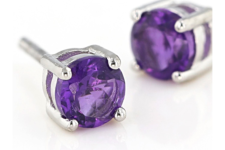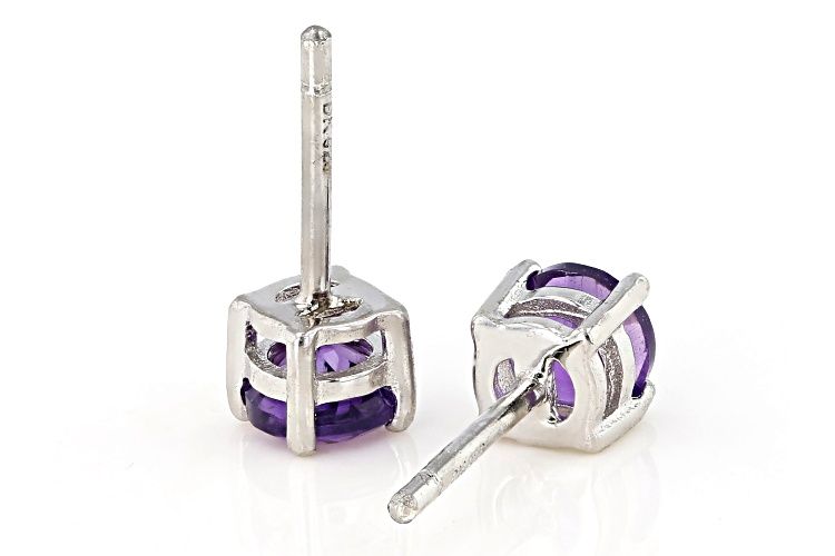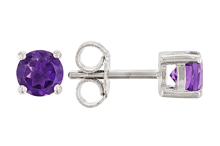 0.43ctw Round African Amethyst Rhodium Over Sterling Silver Children's Stud Earrings