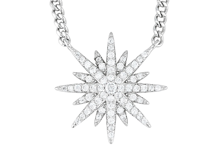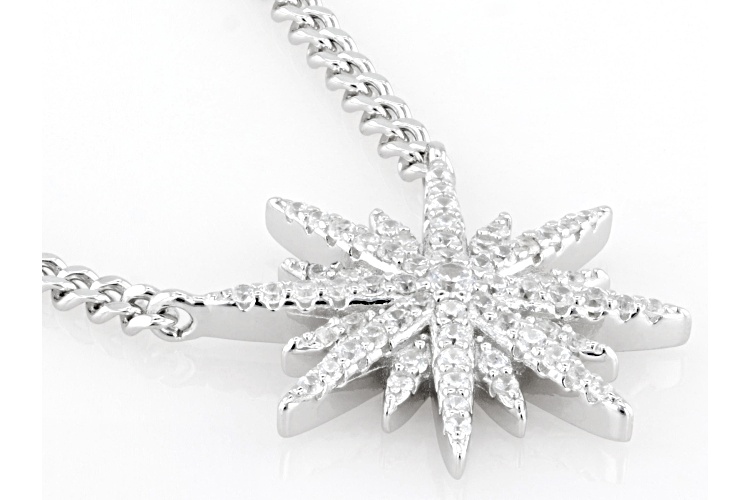 Bella Luce® white diamond simulant 0.76ctw round, rhodium over sterling silver necklace. The necklace drop measures approximately 0.75" L x 0.75" W. The curb chain measures 18" L x 0.03" W and has a 2" extender and lobster claw clasp closure. The diamond equivalent weight is 0.46ctw.
