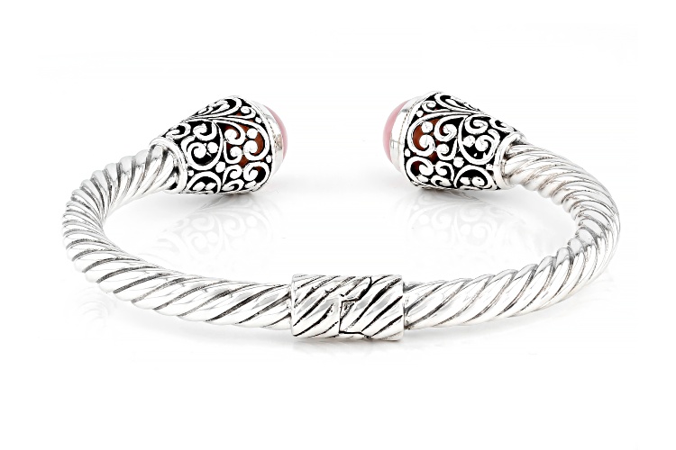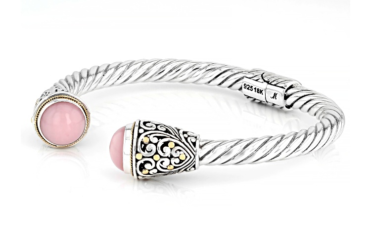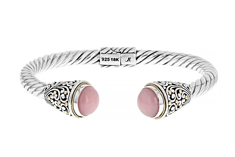 Artisan Collection of Bali™ 10mm Pink Opal Sterling Silver & 18K Gold Accents Cuff Bracelet. Oxidized. Measures Approximately 6.75"L x 0.52"W. Hinged Closure.