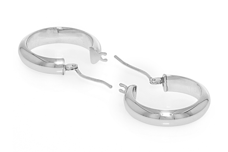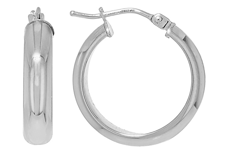 Stefano Oro® Rhodium 14k White Gold Ponte Vecchio Hoop Earrings. Measures approximately 3/4" L x 1/8" W and have saddleback backings.