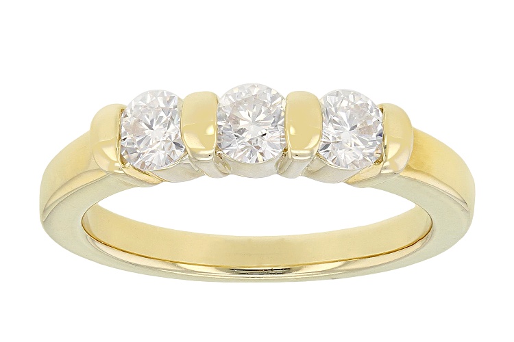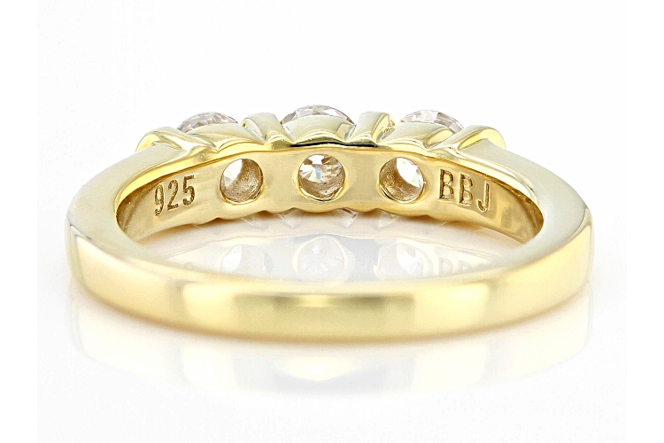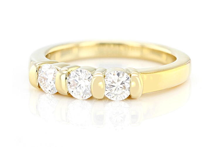 MOISSANITE FIRE® .69CTW DEW ROUND BRILLIANT 14K YELLOW GOLD OVER SILVER 3 STONE RING - Size 6
