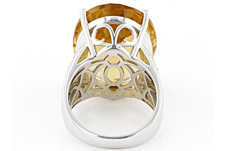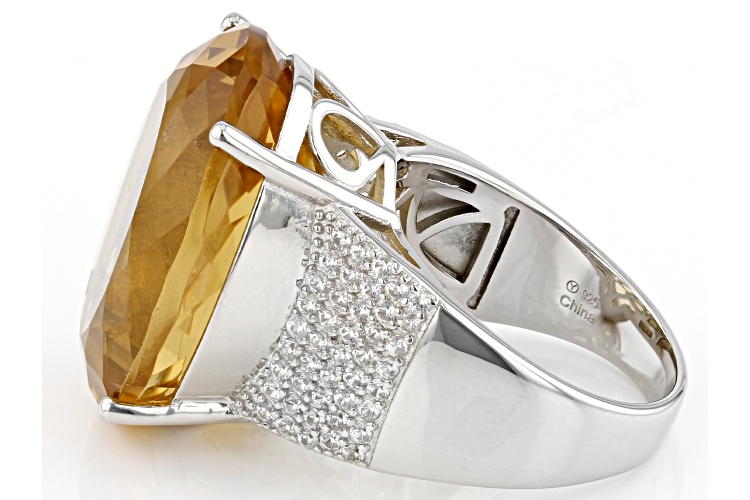 20.00ct Oval Brazilian Citrine With 1.00ctw White Zircon Rhodium Over Silver Solitaire Ring - Size 11