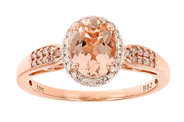 0.95ct Cor-De-Rosa™ Morganite With 0.15ctw White and Pink Diamond 10k Rose Gold Ring - Size 6