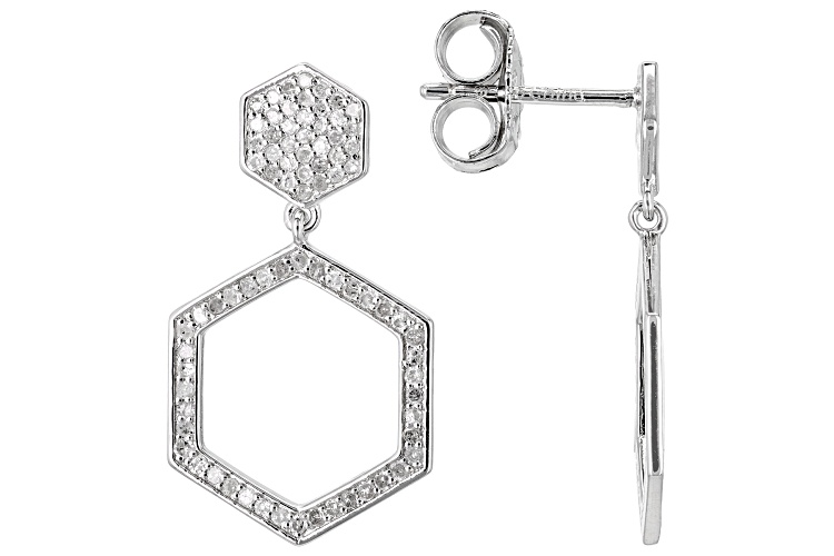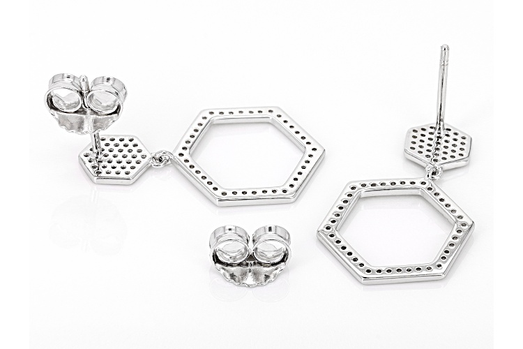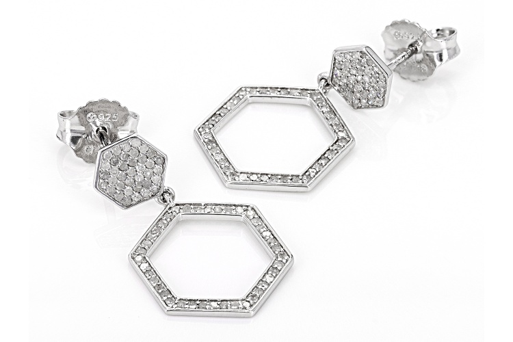 0.55ctw round white diamond, rhodium over sterling silver cluster earrings. Measure approximately 7/8"L x 3/8"W and have push back backings.