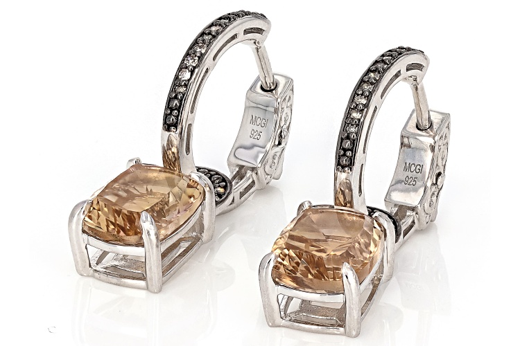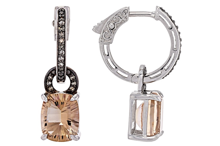 4.91ctw Concave-Cut Champagne Quartz Rhodium Over Silver Earrings