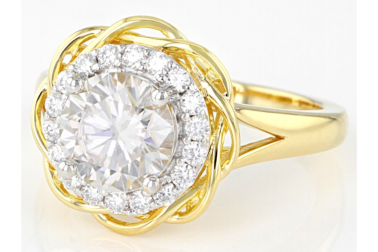 MOISSANITE FIRE(R) 2.26CTW DEW ROUND 14K YELLOW GOLD OVER SILVER RING - Size 8