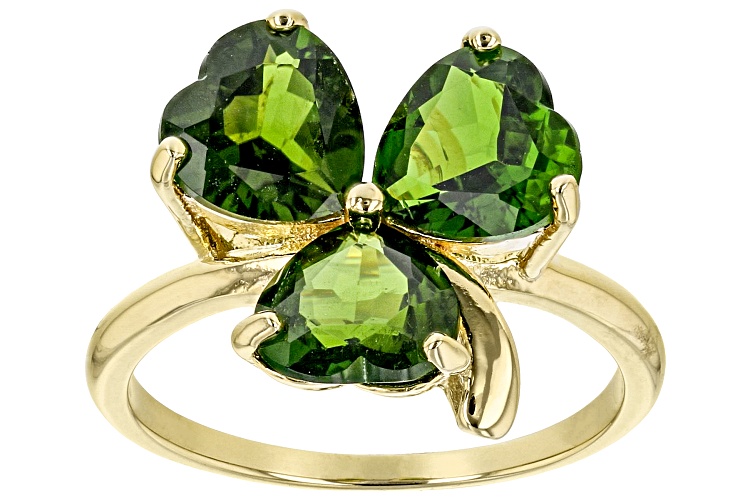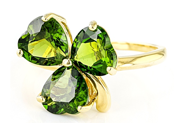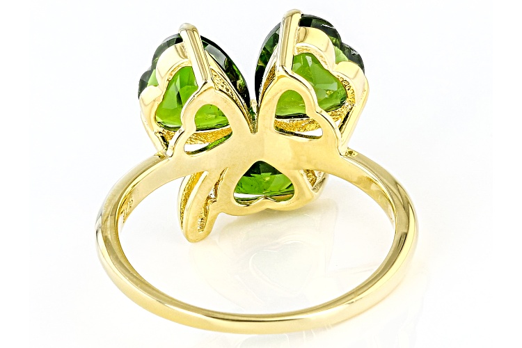 3.14ctw Heart Shaped Chrome Diopside 18k Yellow Gold Over Sterling Silver Shamrock Ring - Size 9