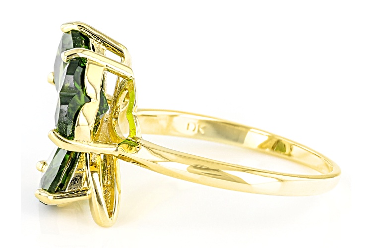 3.14ctw Heart Shaped Chrome Diopside 18k Yellow Gold Over Sterling Silver Shamrock Ring. Measures Approximately 0.57"L x 0.53"W. Not sizeable.
