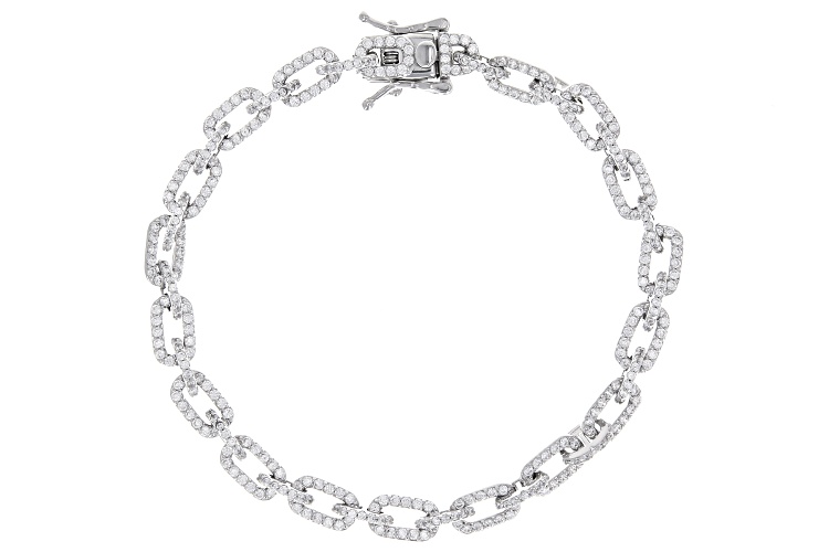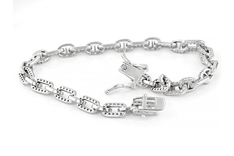 Bella Luce® white diamond simulant 4.06ctw round, rhodium over sterling silver bracelet. Measures approximately 7.25-8"L x 0.2W with a hidden box clasp.