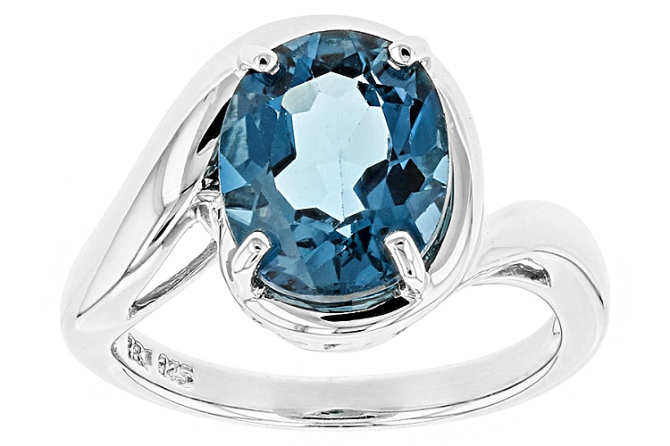 3.85ct Oval London Blue Topaz Rhodium Over Sterling Silver Solitaire Ring - Size 10