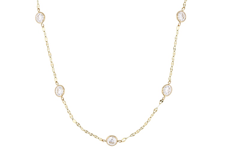 MOISSANITE FIRE® 0.80CTW DEW ROUND BRILLIANT 14K YELLOW GOLD NECKLACE - Size 18