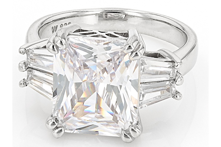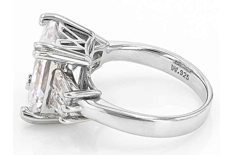 Charles Winston for Bella Luce® white diamond simulant 10.38ctw rectangle and baguette, rhodium over sterling silver ring. Measures approximately 0.81" L x 0.44" W and is not sizable. The diamond equivalent weight is 6.29ctw.