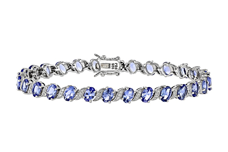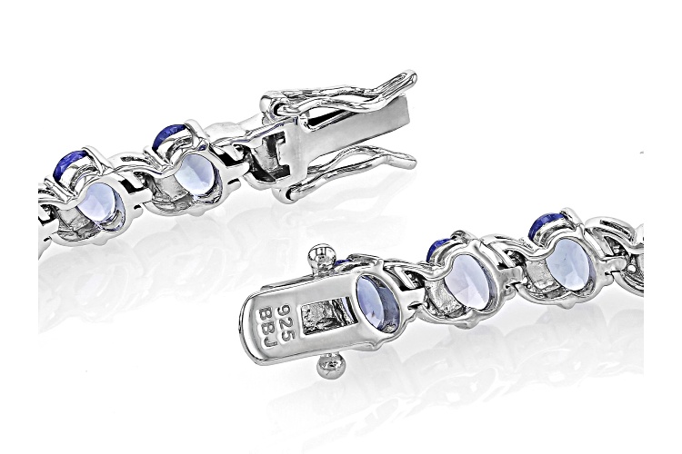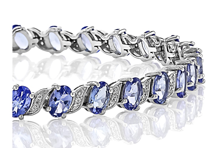9.50ctw Oval Tanzanite With 0.46ctw Round White Zircon Rhodium Over Sterling Silver Tennis Bracelet - Size 7.25