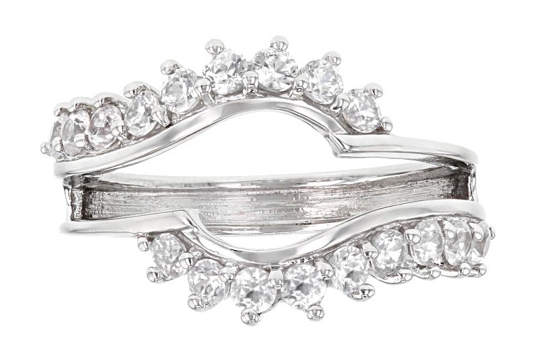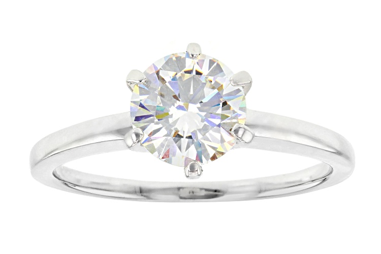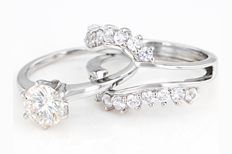 1.76ct Strontium Titantate and 1.26ctw White Zircon Rhodium Over Silver Ring with Guard - Size 8