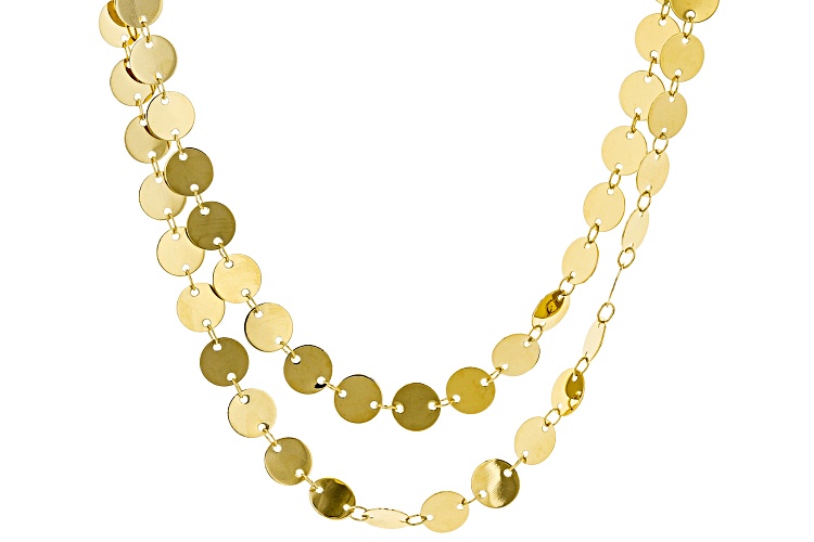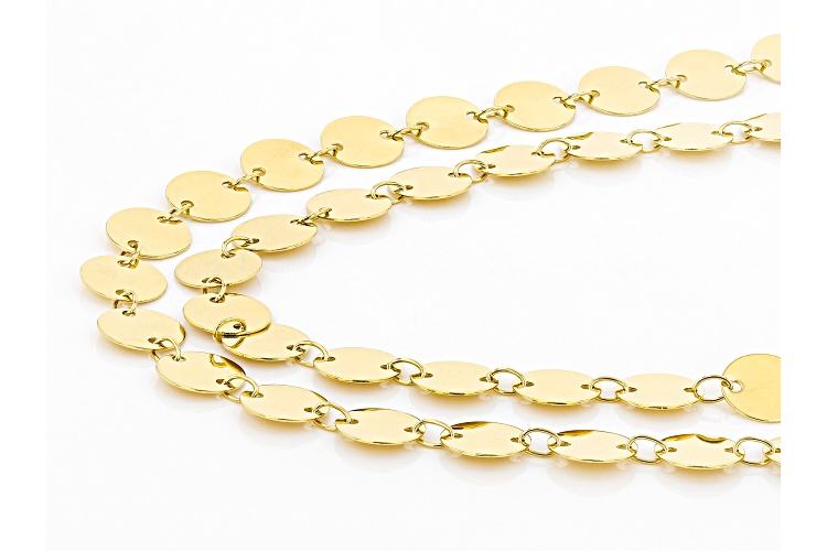 Moda Al Massimo ® 18k yellow gold over bronze multi-row necklace. Measures approximately 0.30"W and has a disc chain with a lobster claw closure with 1 inch extender.