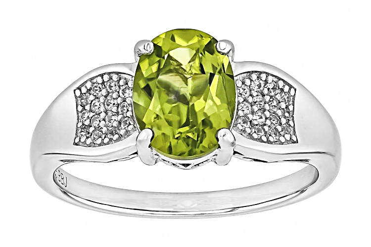 1.74ct Oval Manchurian Peridot™ With 0.17ctw White Zircon Rhodium Over Sterling Silver Ring - Size 9