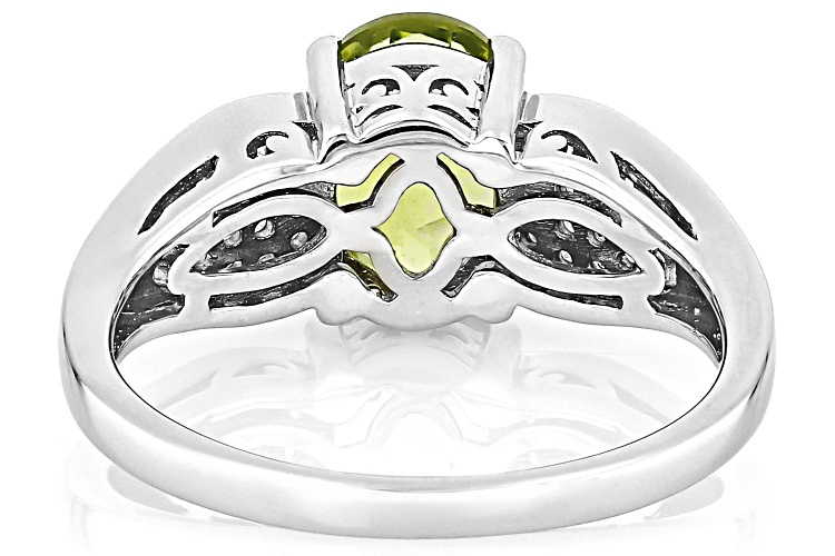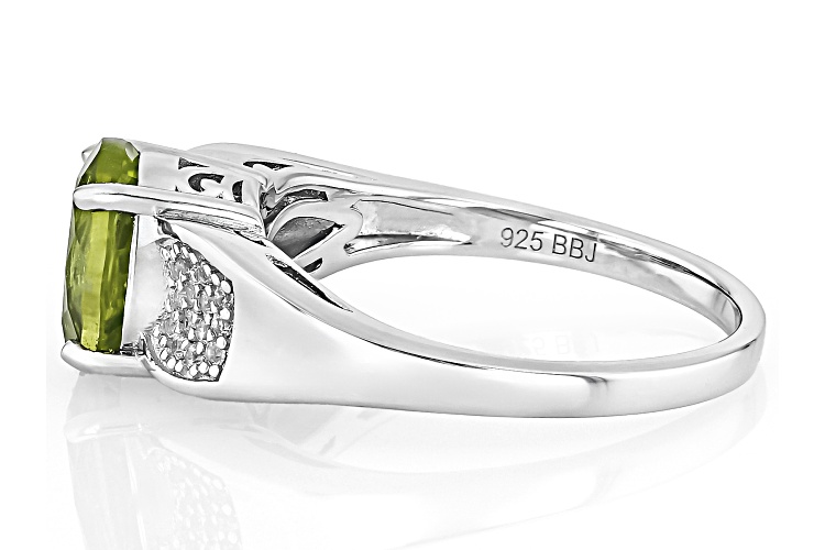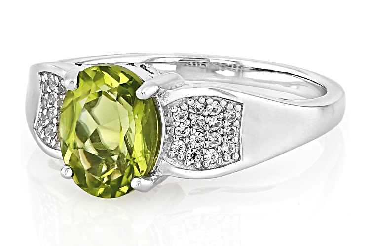 • 1.74ct Oval Manchurian Peridot™ With 0.17ctw White Zircon Rhodium Over Sterling Silver Ring - Size 9