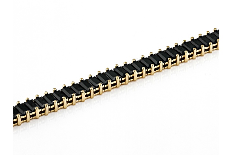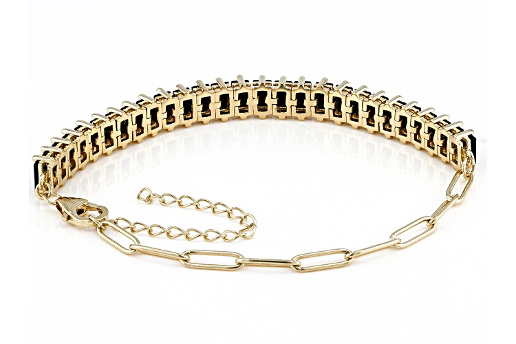 7.36ctw Baguette Black Spinel 18k Yellow Gold Over Sterling Silver Paperclip Bracelet - Size 7.25