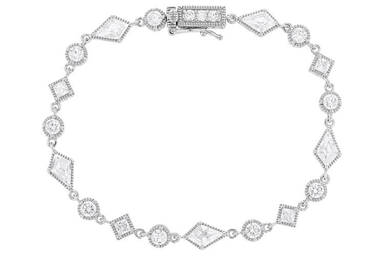• Bella Luce® 7.96ctw White Diamond Simulant Rhodium Over Sterling Silver Multi-Shape Tennis Bracelet - Size 8