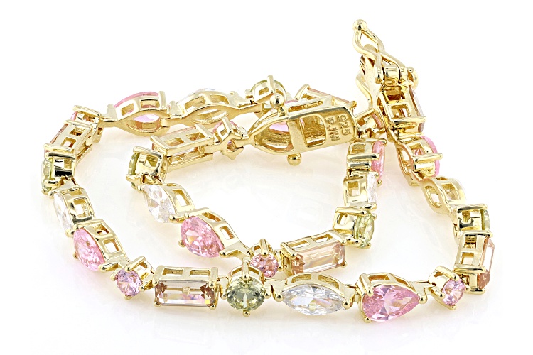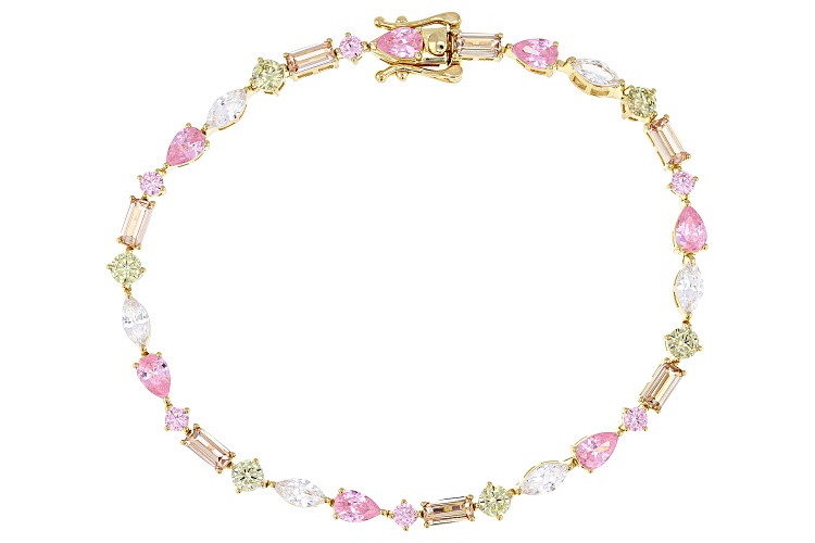 Bella Luce® 13.21ctw Peridot, Pink, Champagne & White Diamond Simulants Eterno™ Yellow Tennis Bracelet. Measures Approximately 0.19"W. Hidden Box Clasp Closure with Double Safety Lock.