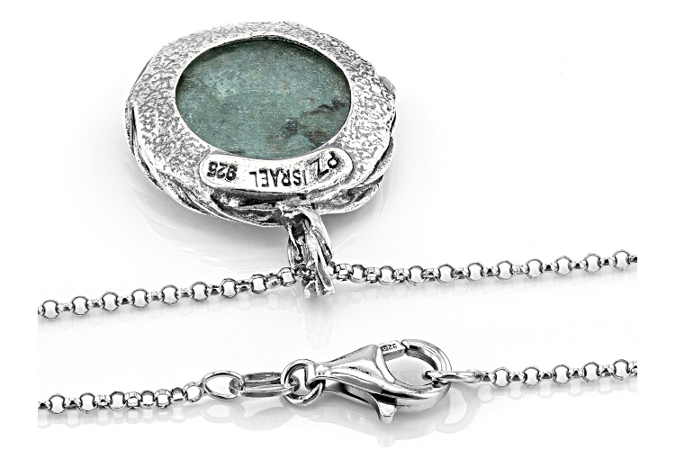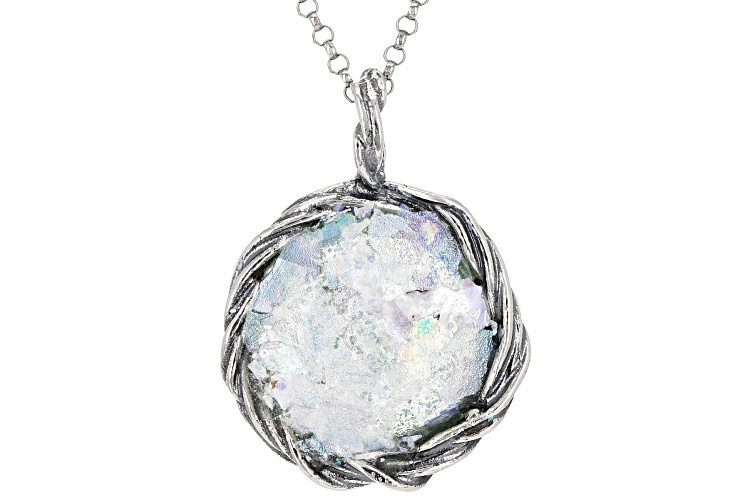 Artisan Collection of Israel™ 17mm Roman Glass Sterling Silver Textured Pendant With Chain