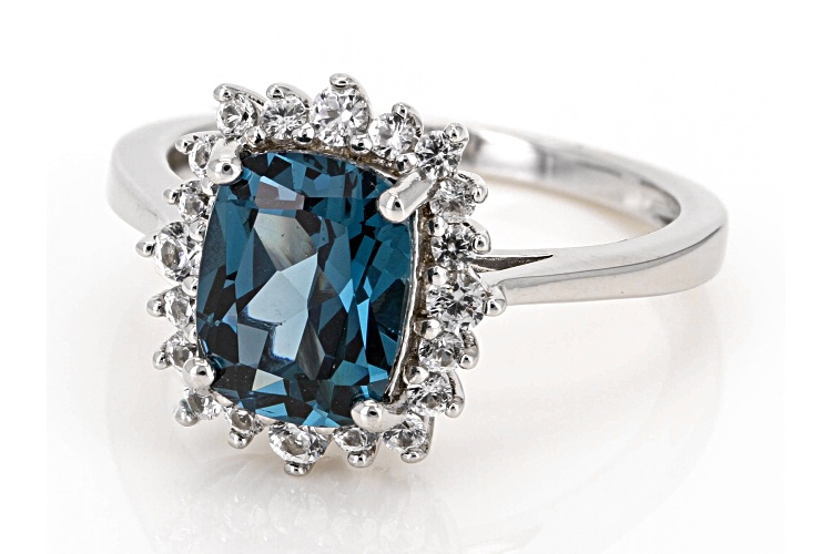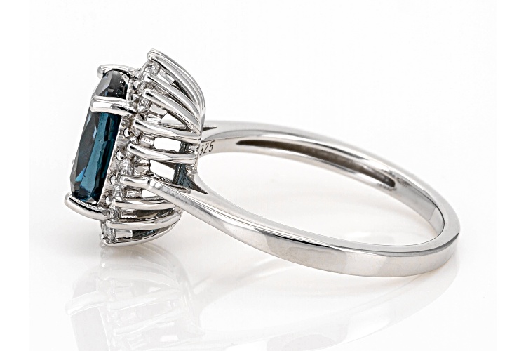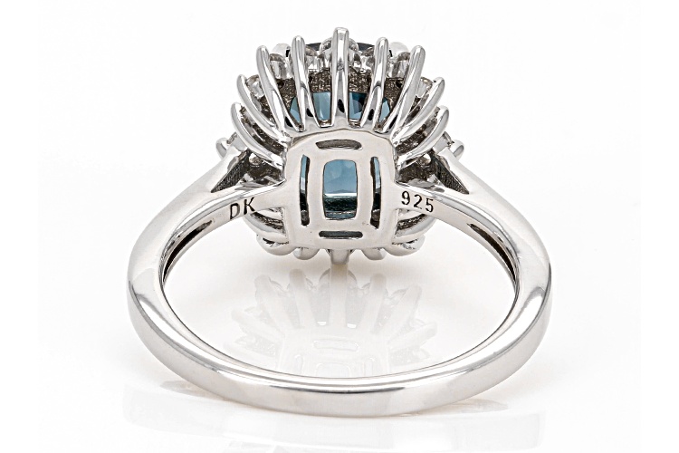 2.19ct Teal Lab Created Spinel with 0.41ctw Lab White Sapphire Rhodium Over Sterling Silver Ring - Size 9