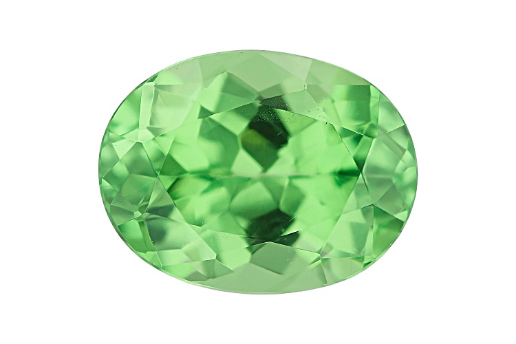 Tanzanian Mint Grossular Garnet 1.77ct 8.5x6.5mm oval. The gemstone was mined in Tanzania and cut in India.
