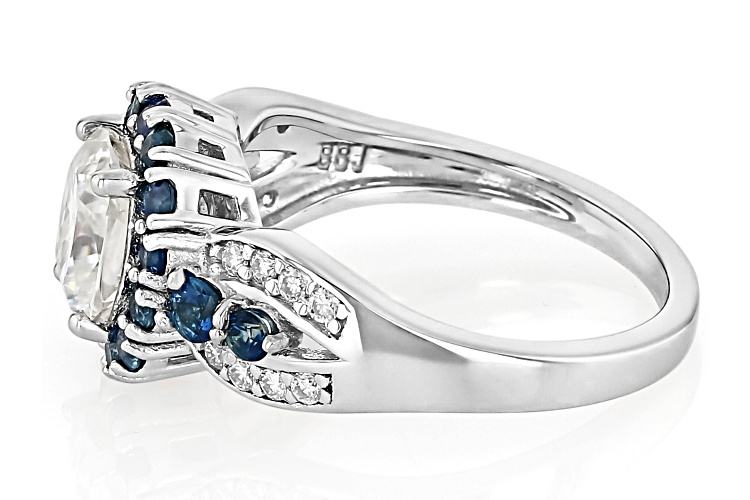 MOISSANITE FIRE® 1.86CTW DEW AND BLUE SAPPHIRE PLATINEVE® RING - Size 9