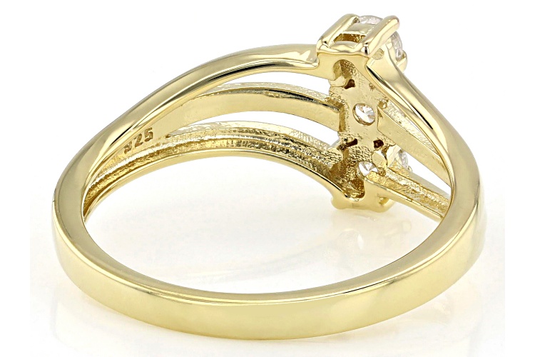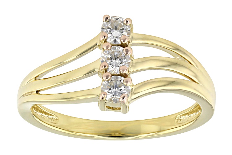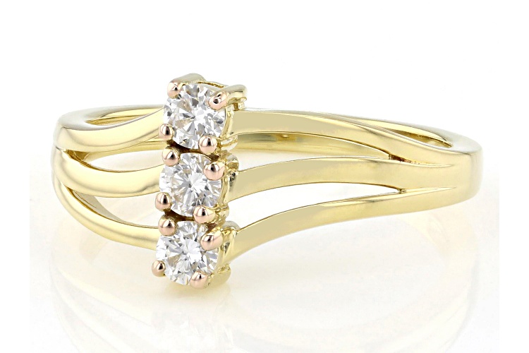 Prazana® Lab-Grown Diamonds 0.25ctw round white lab-grown diamond, 18k yellow gold over sterling silver 3-stone ring. Measures approximately 1/8"L x 3/8"W and is not sizeable. H color, SI clarity minimum.