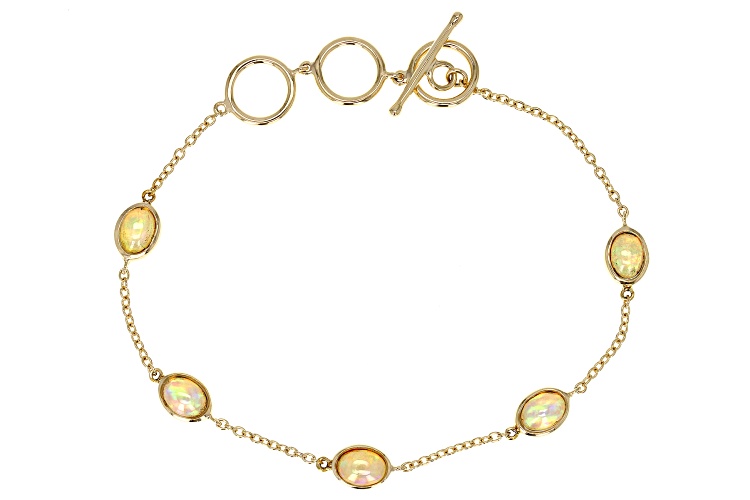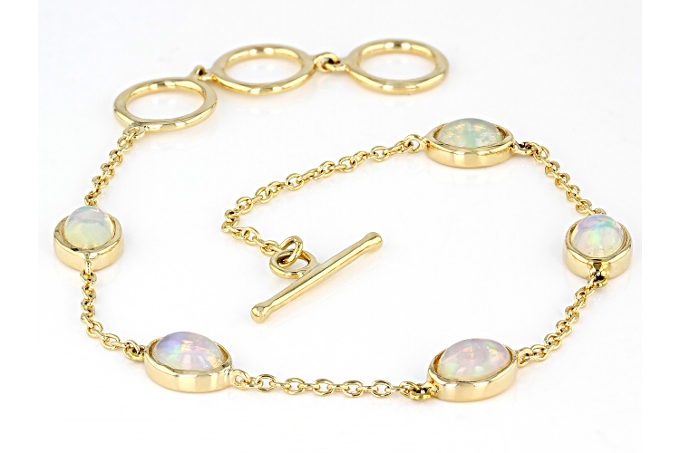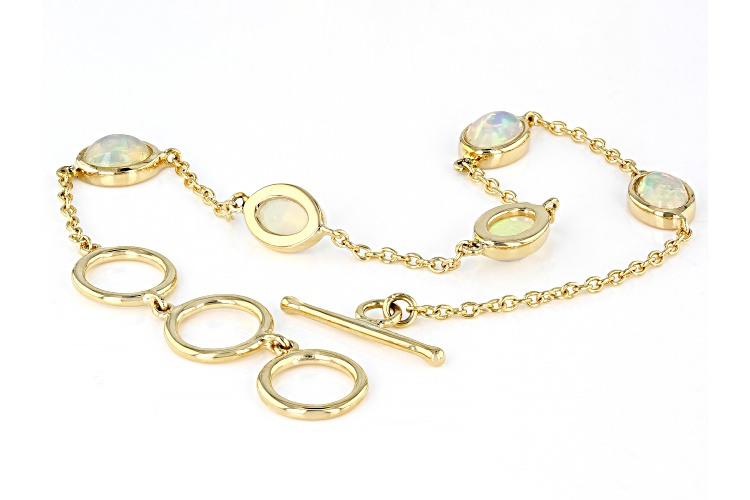 2.30ctw White Ethiopian Opal 18K Yellow Gold Over Sterling Silver Bracelet - Size 7.25