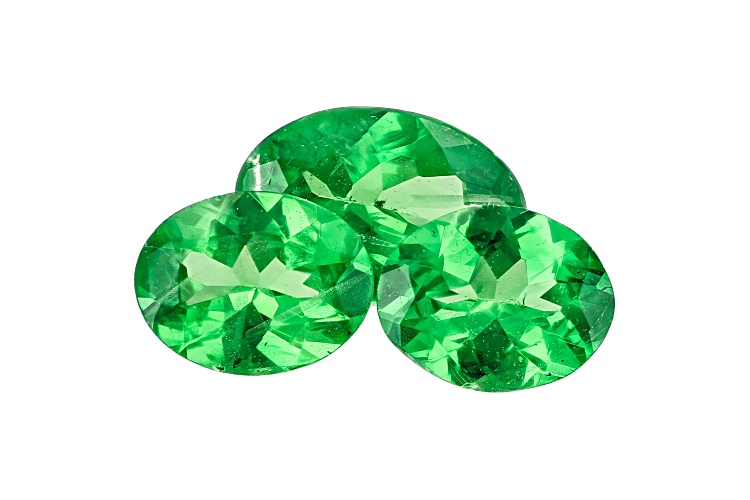 Set of 3 Tanzanian tsavorite garnet 1.16ctw mm varies oval. The gemstone was mined in Tanzania and cut in India.