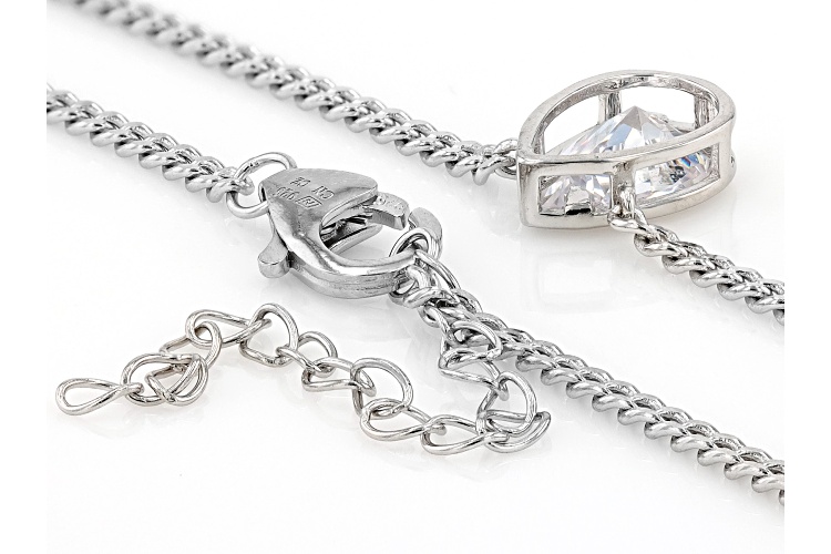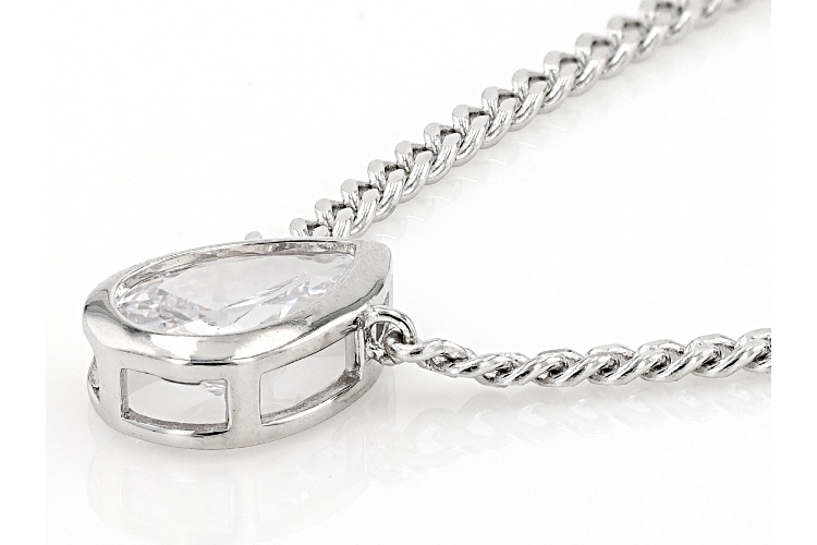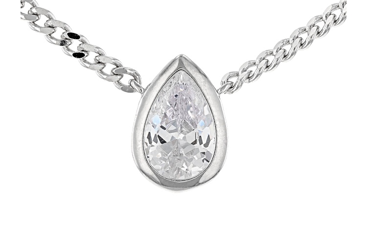 Bella Luce® white diamond simulant 2.10ctw pear, rhodium over sterling silver necklace. Necklace drop measures approximately 0.37" L x 0.30" W. Curb chain measures 16" L x 0.03" W and has a lobster claw clasp closure. The diamond equivalent weight is 1.27ctw.