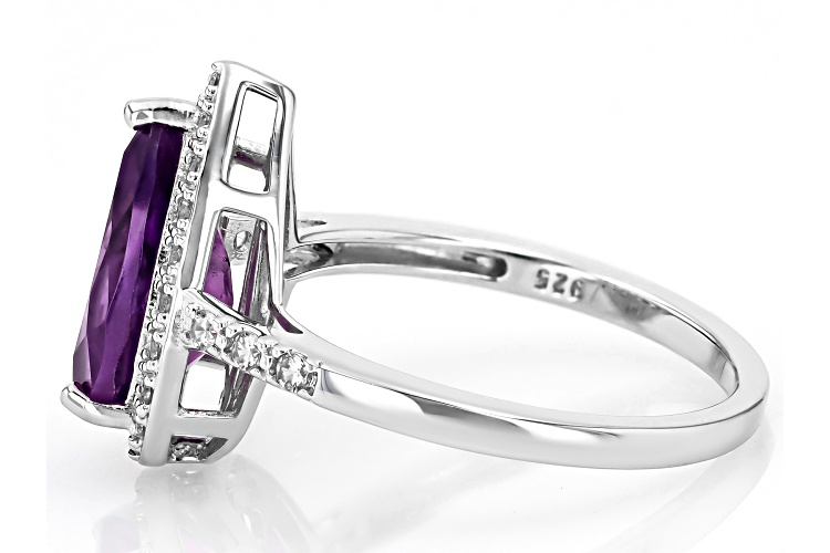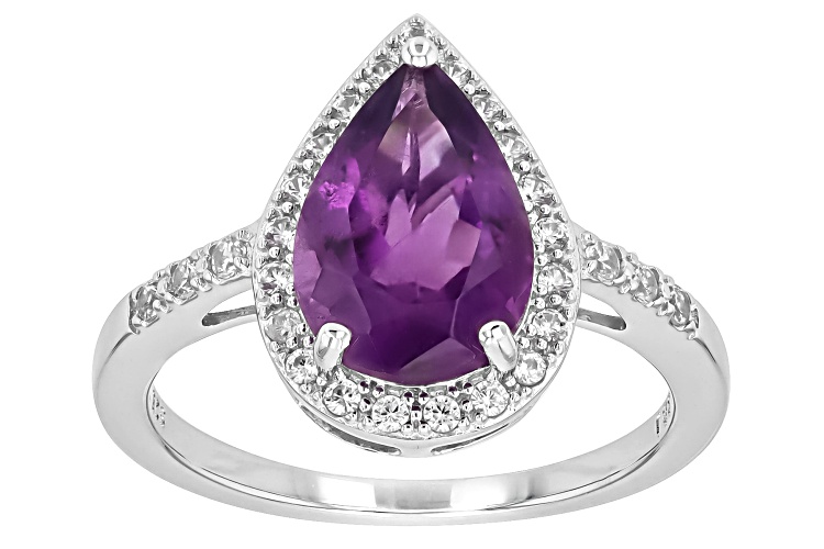 2.00ct Pear Shape African Amethyst With 0.30ctw Round White Zircon Rhodium Over Silver Ring. Measures Approximately 0.88"L x 0.53"W. Not sizeable. Accent stones primarily zircon.
