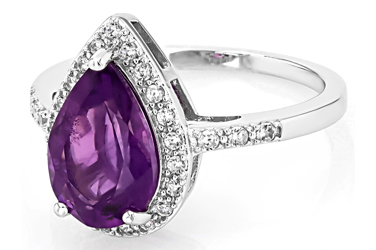 • 2.00ct Pear Shape African Amethyst With 0.30ctw Round White Zircon Rhodium Over Silver Ring - Size 10