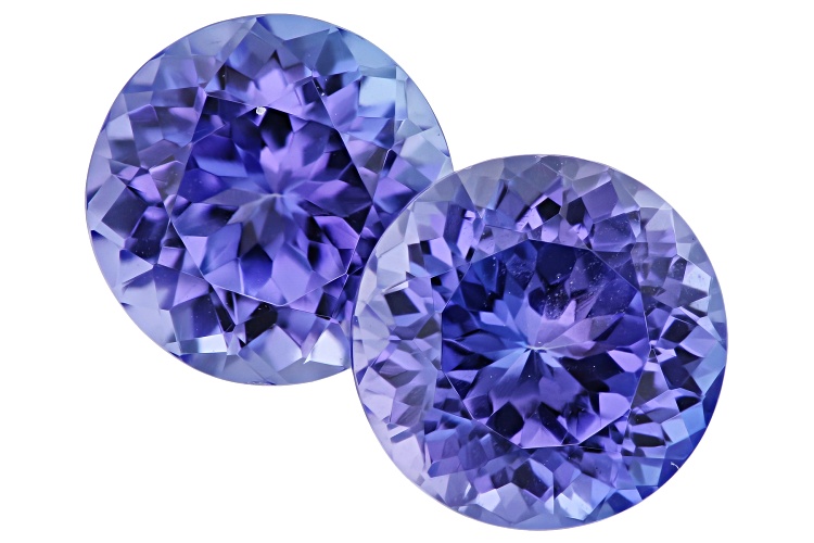 Matched pair of Tanzanite 3.55ctw 7.5mm round. The gemstones were mined in Tanzania and cut in India.