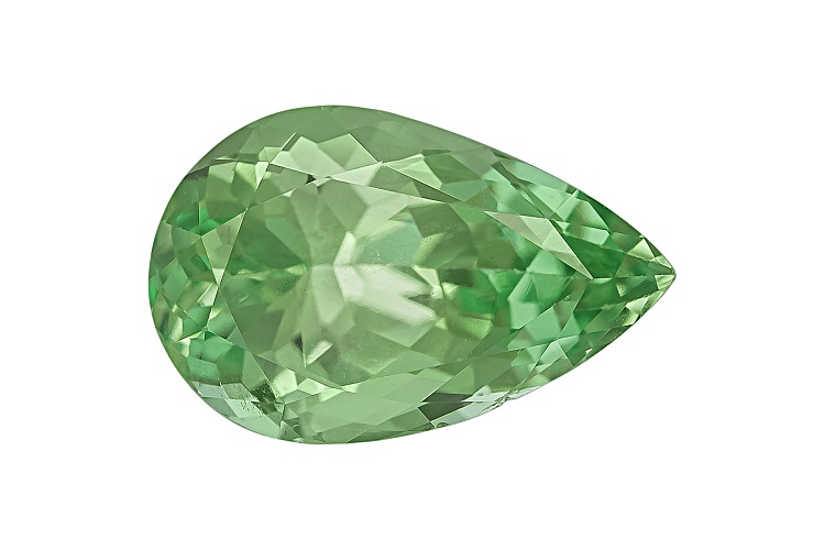 Tanzanian mint grossular garnet 1.21ct 8.25x5.25mm pear shape. The gemstone was mined in Tanzania and cut in India.