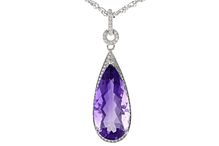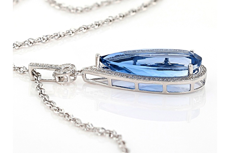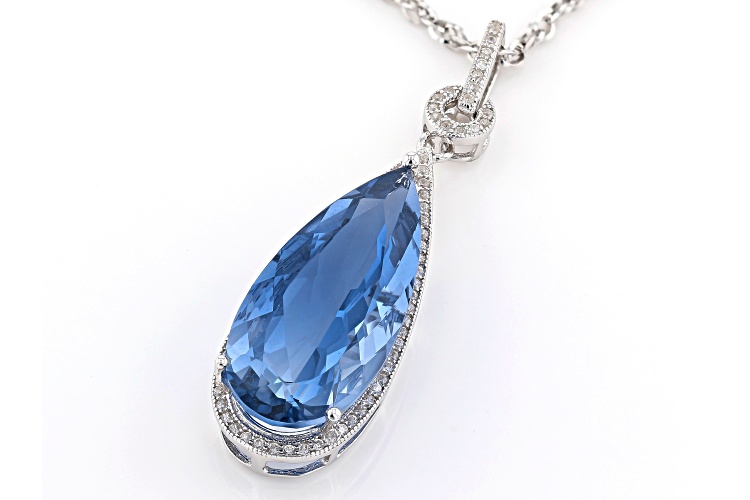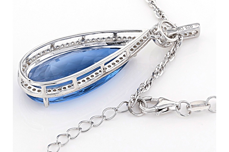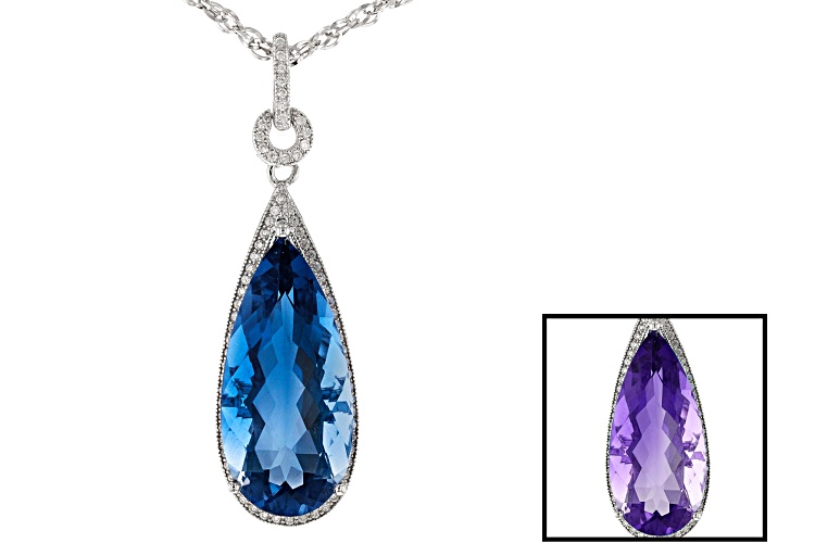 14.45ct Color Change Blue Fluorite And .64ctw White Zircon Rhodium Over Silver Pendant With Chain