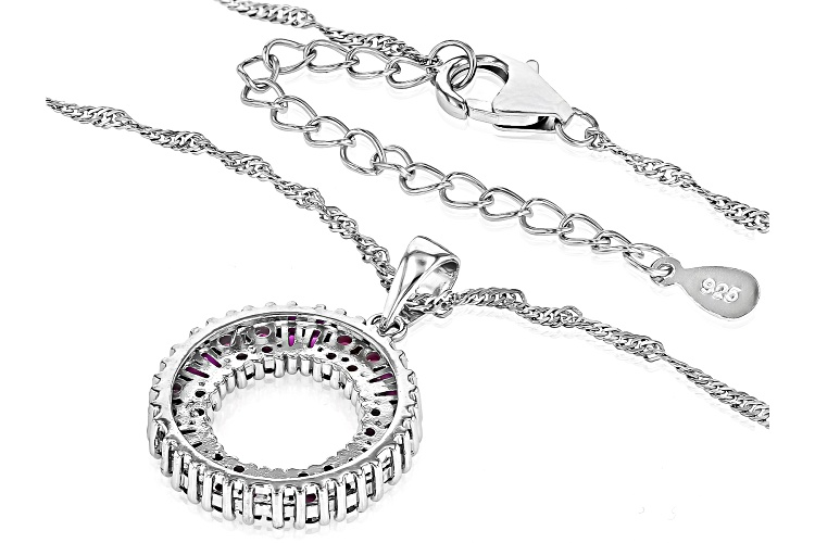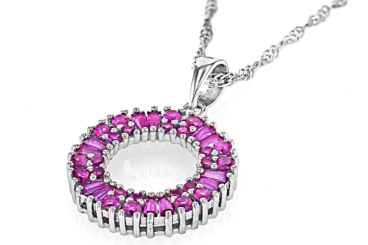 • .61ctw Baguette Lab Ruby With .64ctw Lab Pink Sapphire Rhodium Over Silver Pendant Chain