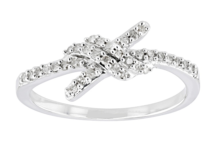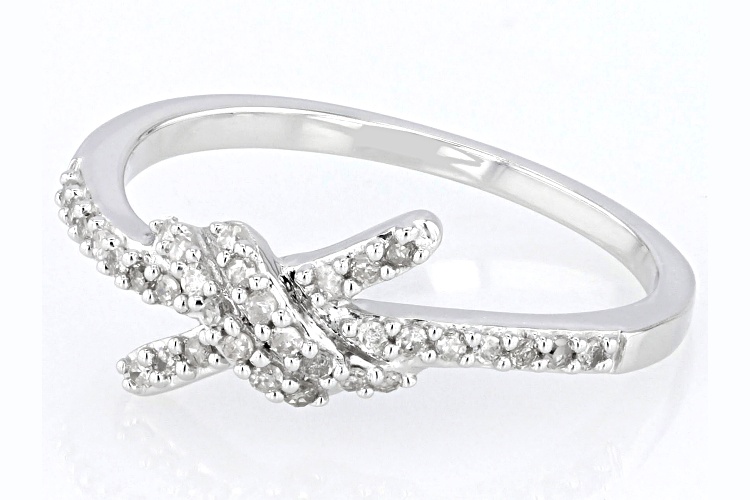 0.17ctw Round White Diamond Rhodium Over Sterling Silver Knot Ring - Size 8