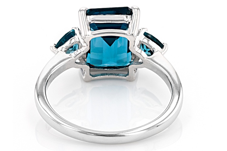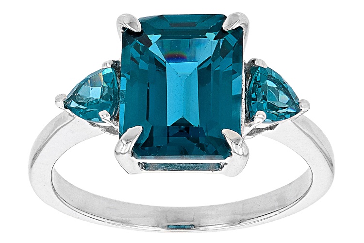 • 3.60ct Rectangular Octagonal & 0.50ctw Trillion Lab Created Teal Spinel Rhodium Over Silver Ring - Size 9