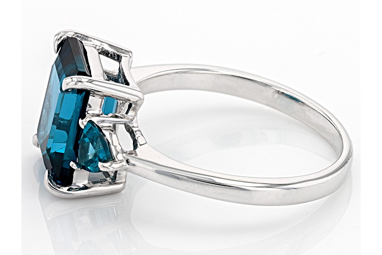 3.60ct Rectangular Octagonal & 0.50ctw Trillion Lab Created Teal Spinel Rhodium Over Silver Ring - Size 9