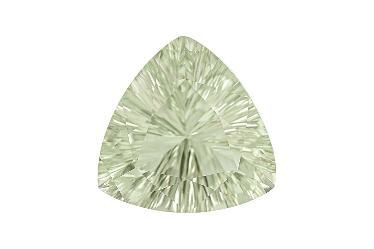 Kadenze™ Collection Afghan green tourmaline 6.46ct 13.55x13.51mm trillion Quantum cut®. The gemstone was mined in Afghanistan and cut in Sri Lanka.