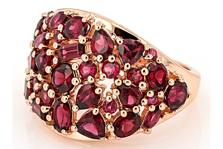 • 4.65ctw Mixed Shape Rhodolite Garnet 18k Rose Gold Over Sterling Silver Ring - Size 10
