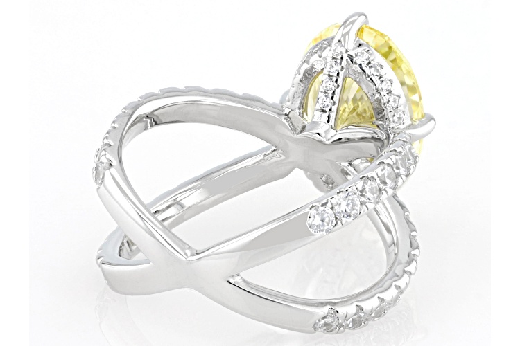 • Bella Luce® 15.43ctw Canary And White Diamond Simulants Rhodium Over Silver Ring(9.35ctw DEW) - Size 9