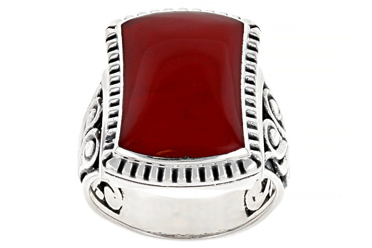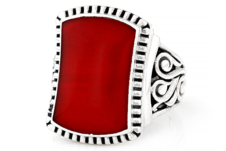 Artisan Collection of Bali™ Rectangle Red Coral Sterling Silver Ring 16x10mm - Size 12